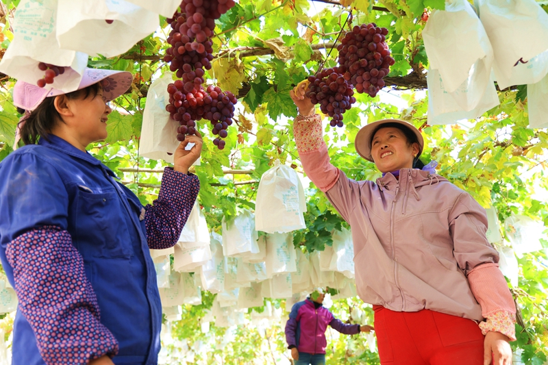 隆冬時節(jié),室外凜冽的寒風吹落了白楊樹上被深秋遺忘僅存的幾片落葉,而臨澤縣新華鎮(zhèn)銀先葡萄專業(yè)合作社的種植大棚里卻溫暖如春。設施葡萄大棚里葡萄藤蔓上掛滿了一串串晶瑩剔透的葡萄,宛如紫玉垂珠,散發(fā)著誘人的果香,一派生機盎然的景象。