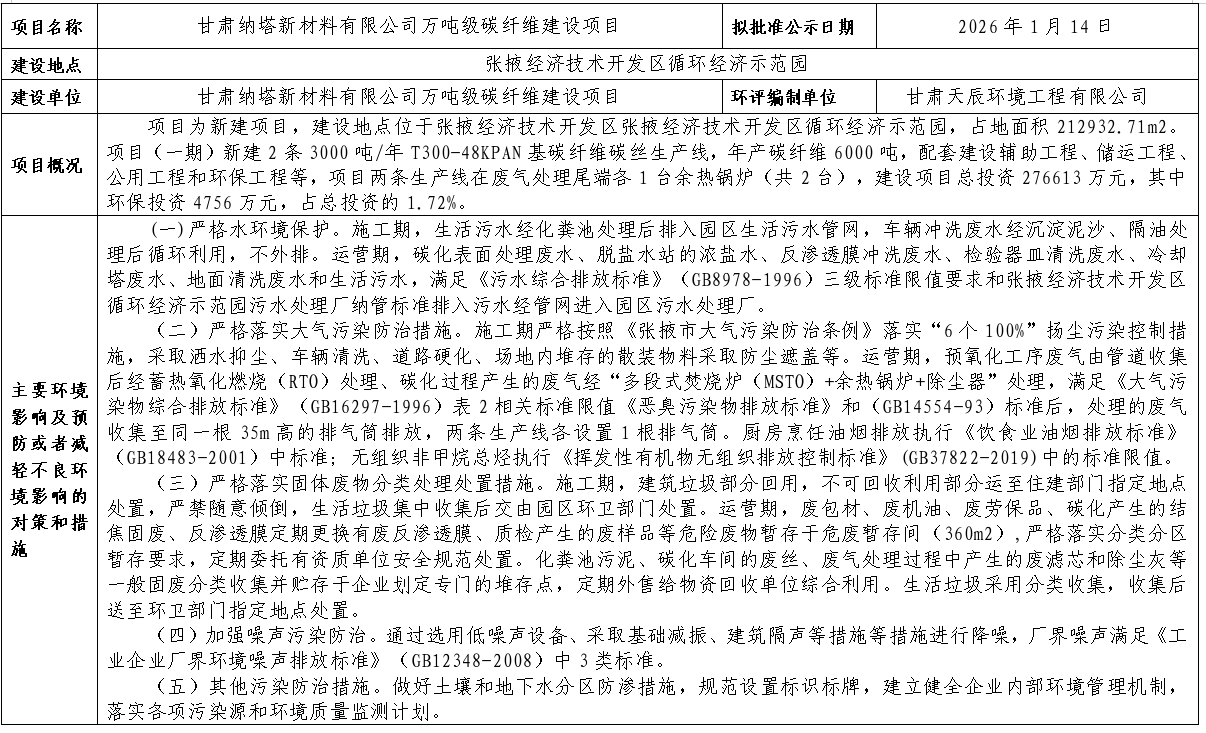 根據(jù)建設(shè)項(xiàng)目環(huán)境影響評價審批程序的有關(guān)規(guī)定,我局?jǐn)M對1個建設(shè)項(xiàng)目環(huán)境影響評價文件進(jìn)行審批?,F(xiàn)將擬審批的環(huán)境影響評價文件基本情況予以公示,公示期為2026年1月14日-2026年1月15日(2個工作日)。