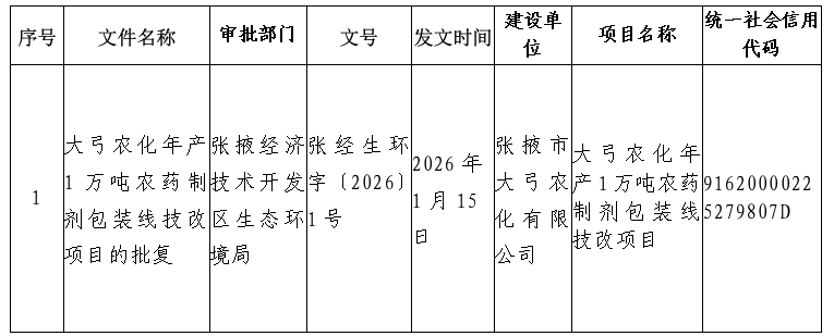 根據建設項目環(huán)境影響評價審批程序的有關規(guī)定,經審查,我局對下列1個建設項目環(huán)境影響評價文件作出審批決定?,F(xiàn)將作出的審批決定予以公告,公告期為2026年1月15日-2026年1月21日(5個工作日)。