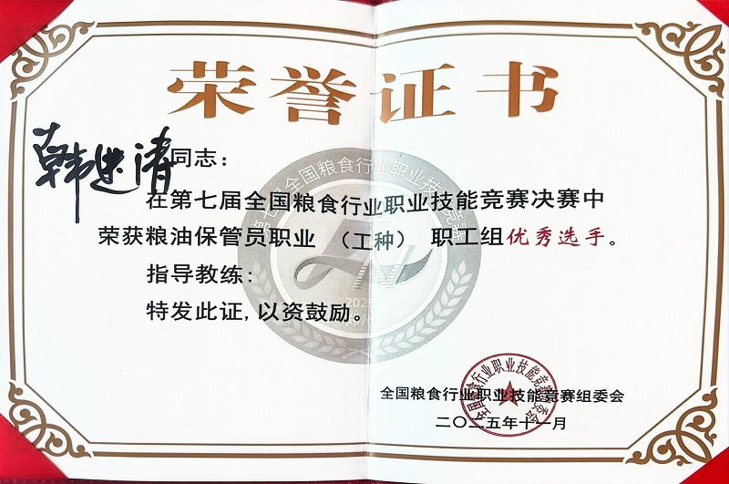 近日,全國(guó)糧食行業(yè)職業(yè)技能競(jìng)賽在河南鄭州圓滿落幕。通過(guò)省糧食和物資儲(chǔ)備局遴選,張掖市糧食和物資儲(chǔ)備局選派韓進(jìn)濤同志代表甘肅參賽,與來(lái)自全國(guó)各地的行業(yè)精英同臺(tái)競(jìng)技、交流學(xué)習(xí),最終獲評(píng)“優(yōu)秀選手”。