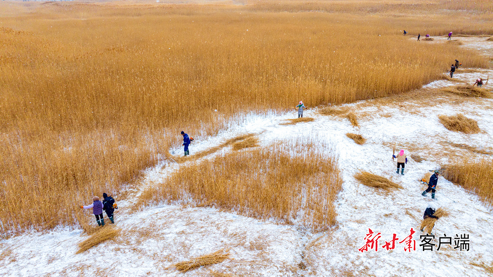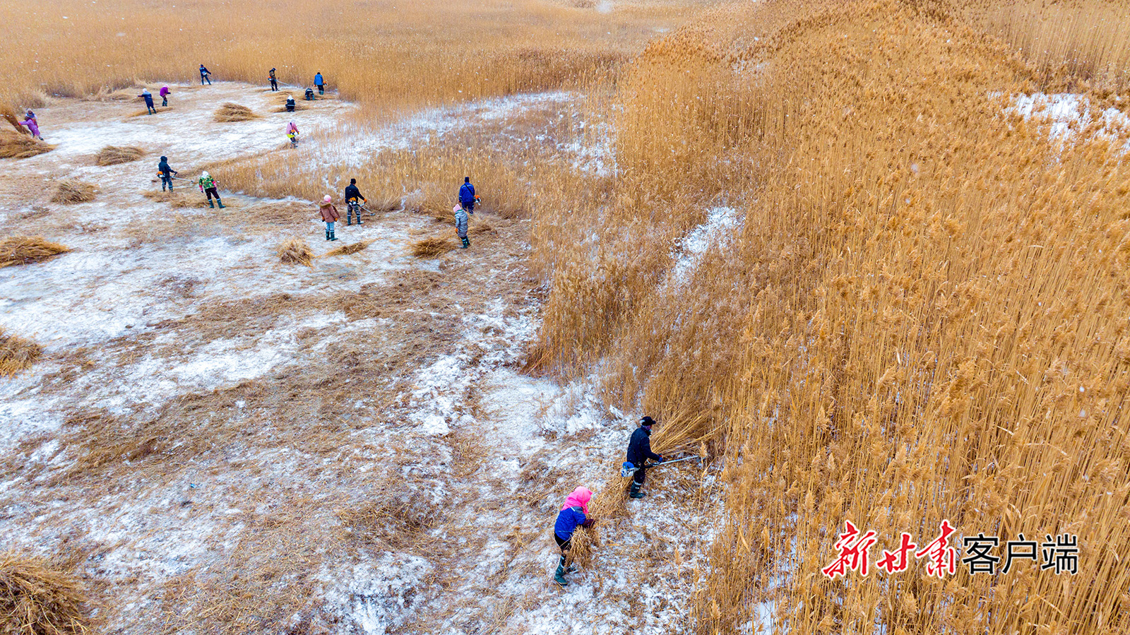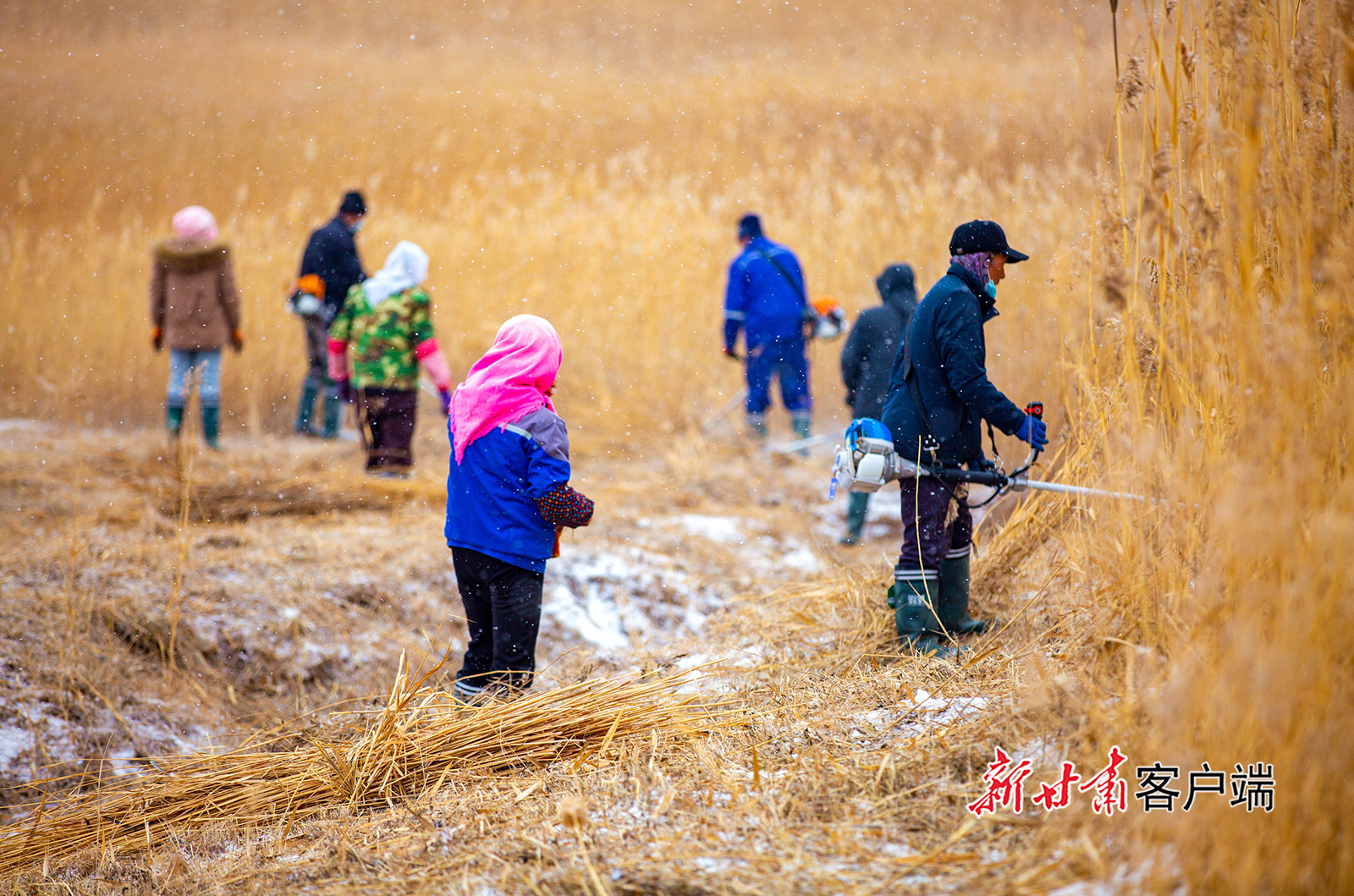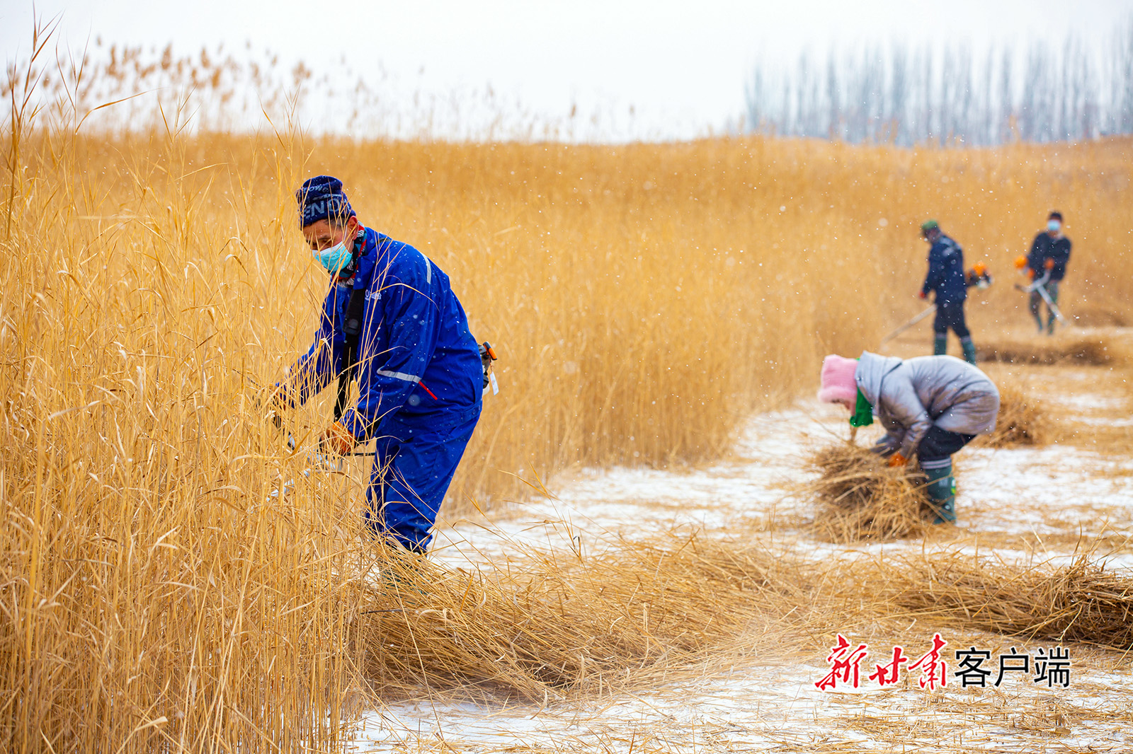 1月2日,張掖國家濕地公園的蘆葦蕩里,工人正在風雪中收割、打捆蘆葦。隆冬時節(jié),張掖濕地管理部門將近3萬畝濕地蘆葦分區(qū)域招標承包,加快蘆葦收割進度。收割的大量蘆葦提供養(yǎng)殖小區(qū)或治沙站,助力生態(tài)養(yǎng)殖和治沙,提高了葦草利用率。