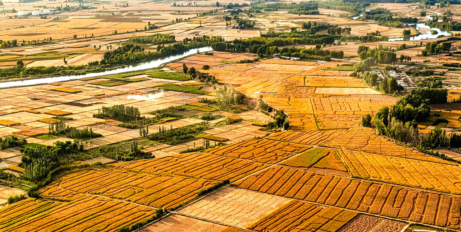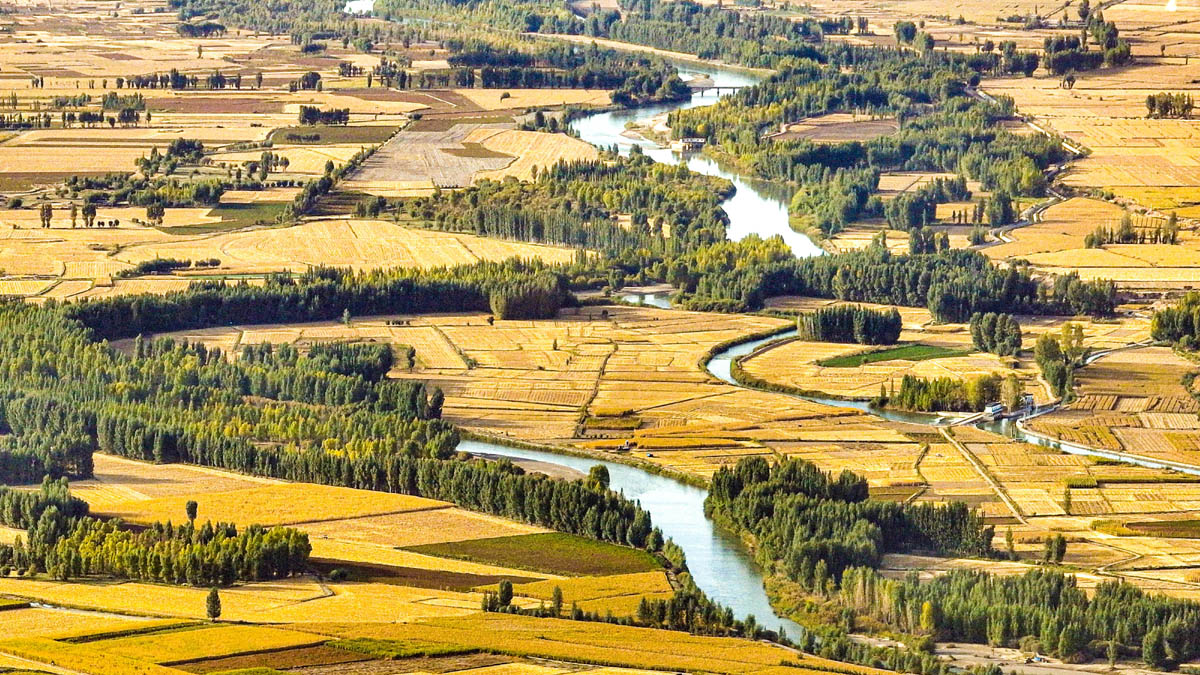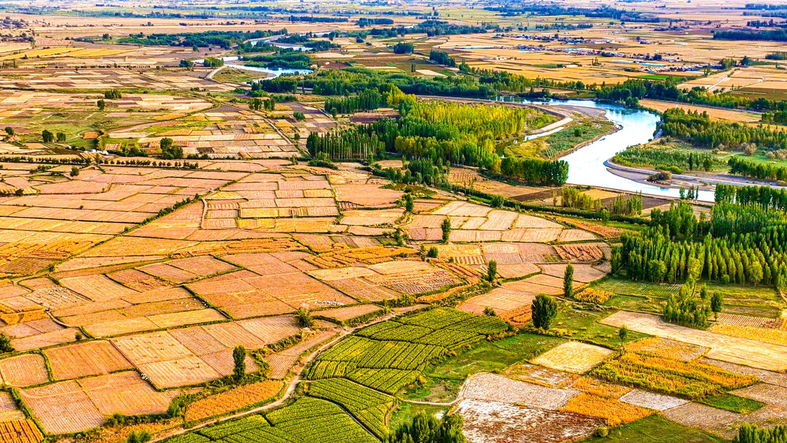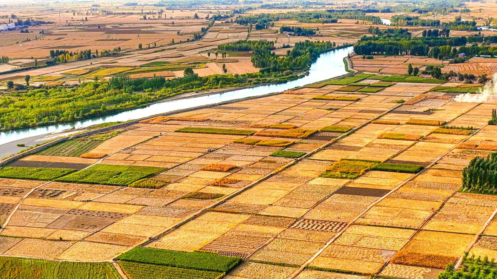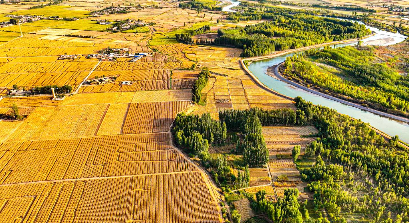 金秋時節(jié),清澈明亮緩緩流淌的黑河水,宛如一條碧帶,黑河兩岸的田野里,張掖市臨澤縣正在收獲的玉米、水稻、辣椒等農(nóng)作物和周邊的樹木、蘆葦、濕地在和煦陽光的照耀下色彩斑斕,構成了一幅絢麗多彩的秋收畫卷。