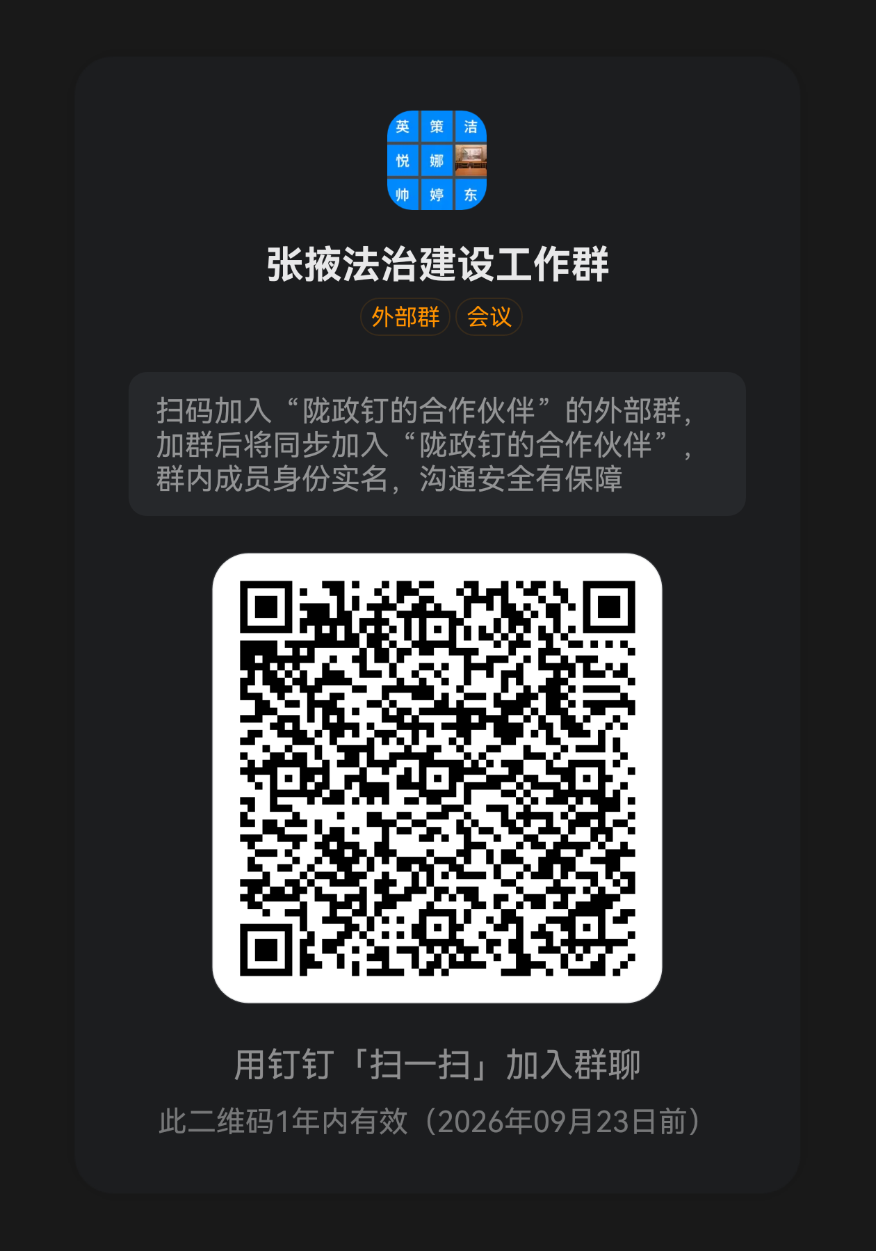 “張掖法治建設(shè)工作群”釘釘群二維碼