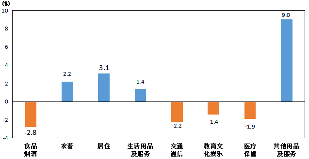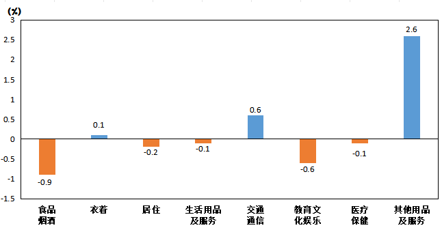 六、教育文化娛樂(lè) | -0.6 | -1.4 | -0.9 |