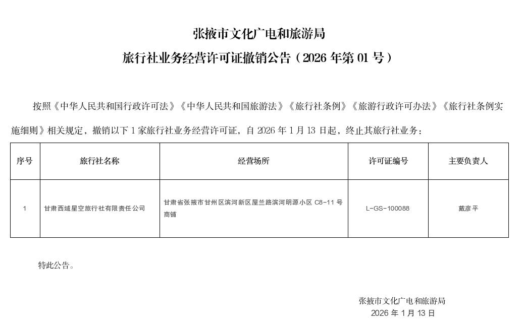 來源:張掖市文化廣電和旅游局日期:2026-01-13