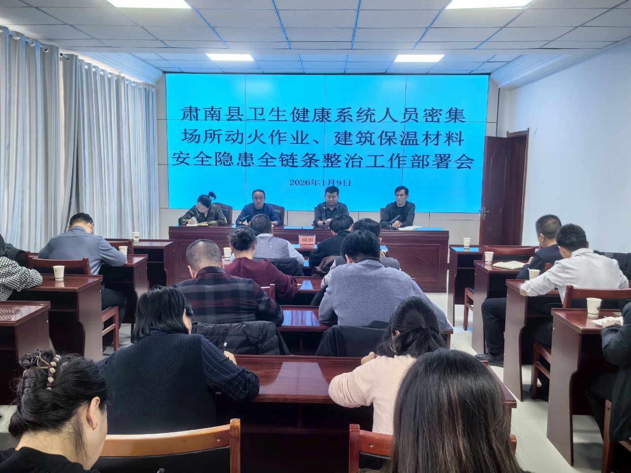 近日,肅南縣衛(wèi)生健康局召開(kāi)2026年第一季度安全生產(chǎn)和消防安全形勢(shì)分析暨專(zhuān)項(xiàng)工作部署推進(jìn)會(huì)。會(huì)議聚焦全國(guó)和省、市、縣兩會(huì)、春節(jié)等重點(diǎn)時(shí)段,突出人員密集場(chǎng)所動(dòng)火作業(yè)、建筑保溫材料安全隱患全鏈條整治、高層建筑重大火災(zāi)風(fēng)險(xiǎn)隱患排查等重點(diǎn)環(huán)節(jié),進(jìn)行專(zhuān)題研判和全面部署??h直各醫(yī)療衛(wèi)生單位、各基層衛(wèi)生院主要負(fù)責(zé)同志及安全分管負(fù)責(zé)人參加會(huì)議。