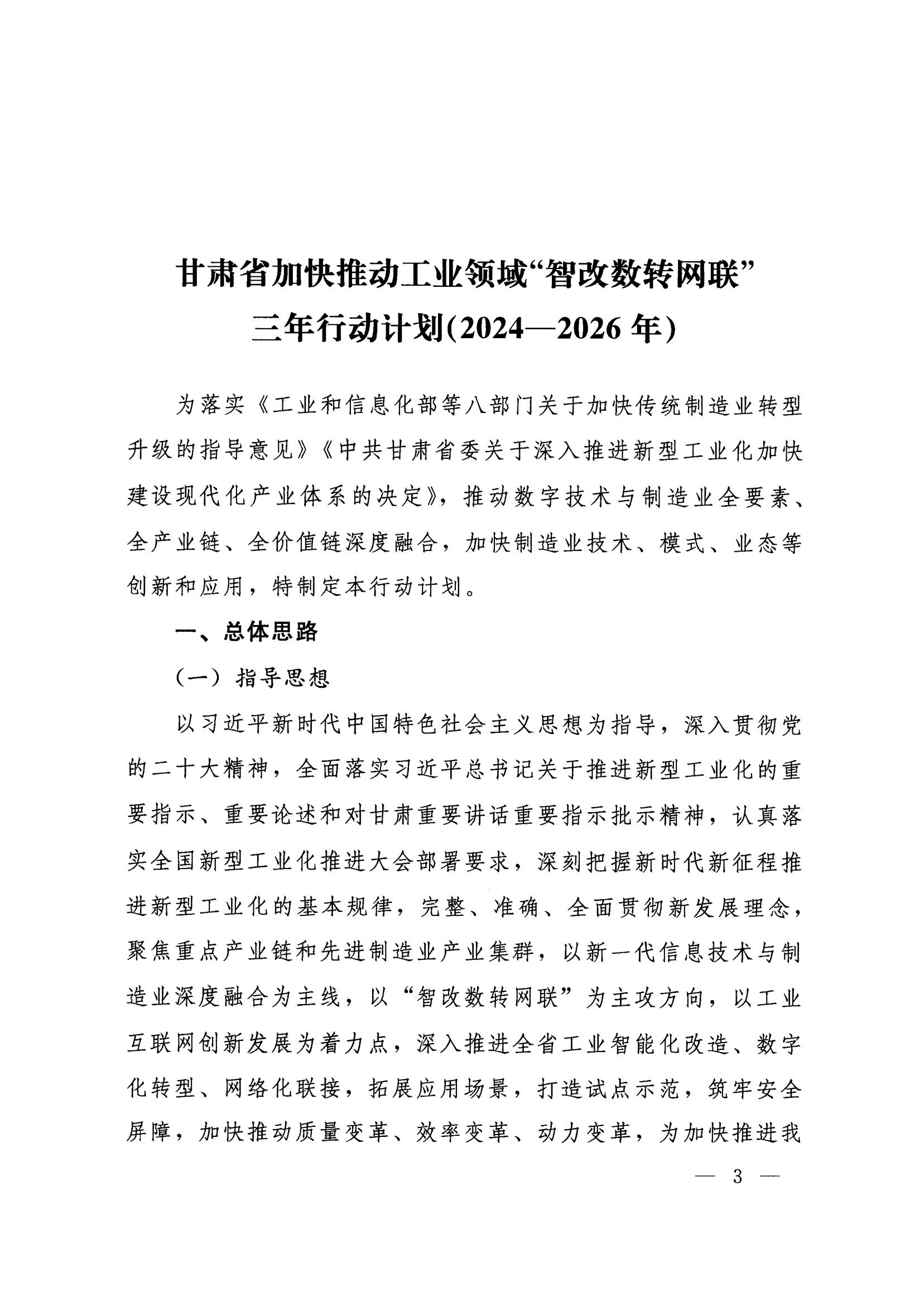????政策解讀:《甘肅省加快推動工業(yè)領域“智改數(shù)轉網(wǎng)聯(lián)”三年行動計劃(2024-2026年)》解讀