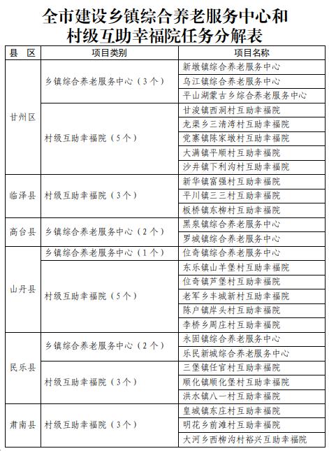 通過提升改造方式,在全市建設(shè)8個鄉(xiāng)鎮(zhèn)綜合養(yǎng)老服務(wù)中心和19個村級互助幸福院。