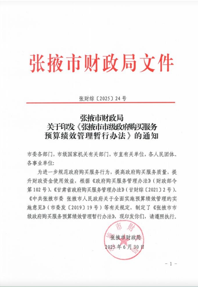 張掖市市級(jí)政府購(gòu)買(mǎi)服務(wù)預(yù)算績(jī)效管理暫行辦法