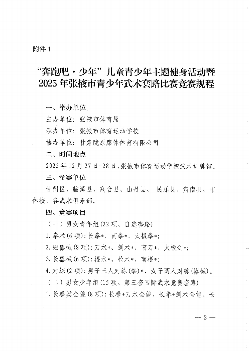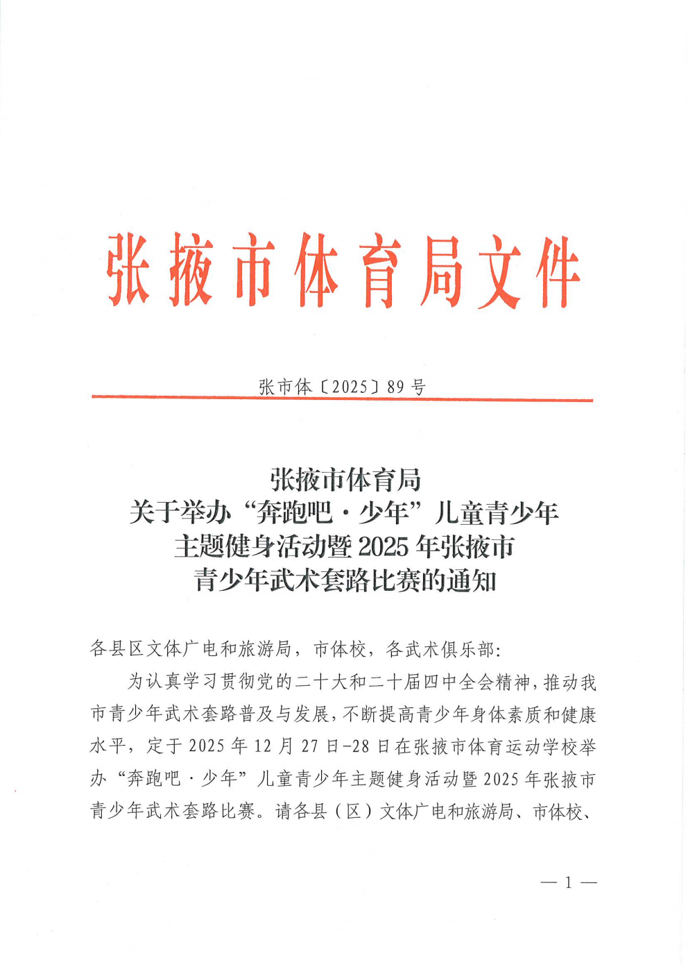 張市體〔2025〕89號 張掖市體育局關(guān)于舉辦“奔跑吧·少年”兒童青少年主題健身活動暨2025年張掖市青少年武術(shù)套路比賽的通知.pdf
