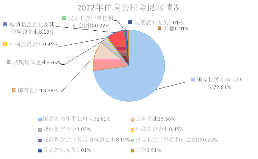 (二)保障結(jié)構(gòu)持續(xù)優(yōu)化,中低收入群體為繳存主力。從繳存單位性質(zhì)來看,2022年繳存職工中,國家機(jī)關(guān)和事業(yè)單位、國有企業(yè)、城鎮(zhèn)集體企業(yè)、城鎮(zhèn)私營企業(yè)及其他城鎮(zhèn)企業(yè)占97.41%;新開戶職工中,國家機(jī)關(guān)和事業(yè)單位、國有企業(yè)、城鎮(zhèn)集體企業(yè)、城鎮(zhèn)私營企業(yè)及其他城鎮(zhèn)企業(yè)占92.97%,是住房公積金繳存的主要力量。從繳存職工和新開戶職工收入分類占比來看,中、低收入占100%,符合住房公積金保障中、低收入職工家庭住房消費(fèi)的制度定位。
