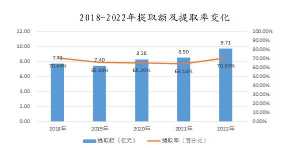 (二)提取金額顯著增長。2022年,2.54萬名繳存職工提取住房公積金,提取額9.71億元,同比增長14.19%;2022年末,提取總額65.64億元,比上年末增加17.35%。