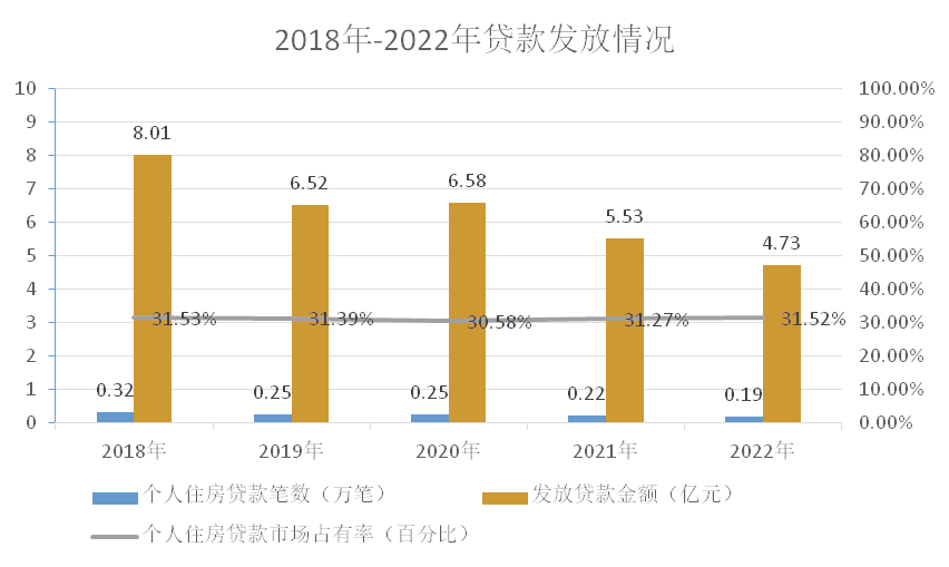 2022年,中心堅(jiān)持“房子是用來住的,不是用來炒的”的定位,落實(shí)國家對房地產(chǎn)市場宏觀調(diào)控政策,著力解決剛需職工貸款需求,重點(diǎn)支持中低收入人群、購買144平方米以下普通住宅人群以及購買首套住房使用公積金貸款人群,圓市民安居夢想。2022年發(fā)放個(gè)人住房貸款0.19萬筆4.73億元,支持職工購建住房面積23.57萬平方米,與商業(yè)性住房貸款比較,通過申請住房公積金個(gè)人住房貸款可節(jié)約職工購房利息支出6526.14萬元。2022年受房地產(chǎn)市場影響,公積金貸款整體發(fā)放規(guī)模比前幾年有所下降,但仍滿足了較高的市場需求,保持了較高的市場占有率。