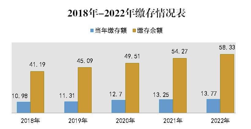 (一)繳存額穩(wěn)步增長。2022年我市住房公積金繳存額和繳存余額分別為13.77億元和58.33億元,比2018年分別增加2.79億元和17.14億元,近5年繳存額年均增長5.89%。