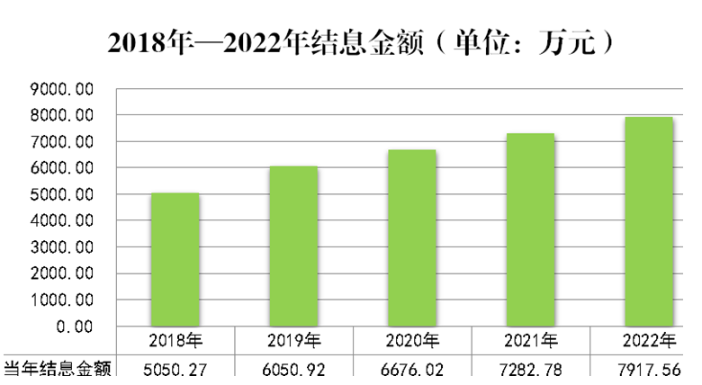 (五)結(jié)息保障繳存職工權(quán)益。2022年按中國人民銀行規(guī)定利率1.5%為繳存職工結(jié)息7917.56萬元,5年來共為繳存職工結(jié)息32977.55萬元,有效保證了繳存職工的住房公積金保值增值。