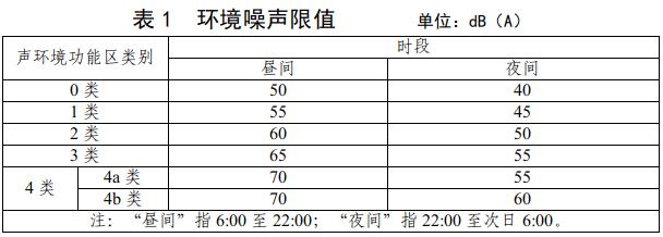 各類聲環(huán)境功能區(qū)的環(huán)境噪聲等效聲級(jí)限值見表1。