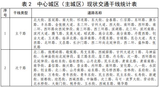 根據(jù)《中心城區(qū)道路交通規(guī)劃圖》,依據(jù)《聲環(huán)境功能區(qū)劃分技術(shù)規(guī)范》(GB/T 15190-2014)相關(guān)規(guī)定,將分布于中心城區(qū)內(nèi)的城市主干路、城市次干路及其紅線兩側(cè)一定距離內(nèi)的區(qū)域統(tǒng)一劃定為4a類區(qū)。中心城區(qū)(主城區(qū))現(xiàn)狀交通干線見表2。