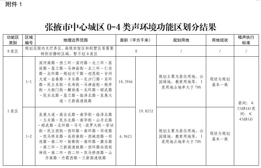 附件:1.張掖市中心城區(qū)0-4類聲環(huán)境功能區(qū)劃分結(jié)果